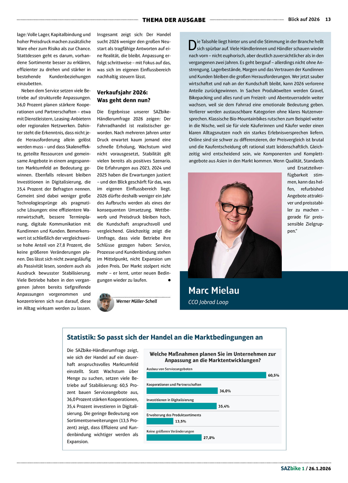 Marc Mielau, Chief Commercial Officer von JobRad® Loop, gibt in der aktuellen SAZbike-Ausgabe seine Einschätzung zur Marktentwicklung im Fahrrad-Refurbishment