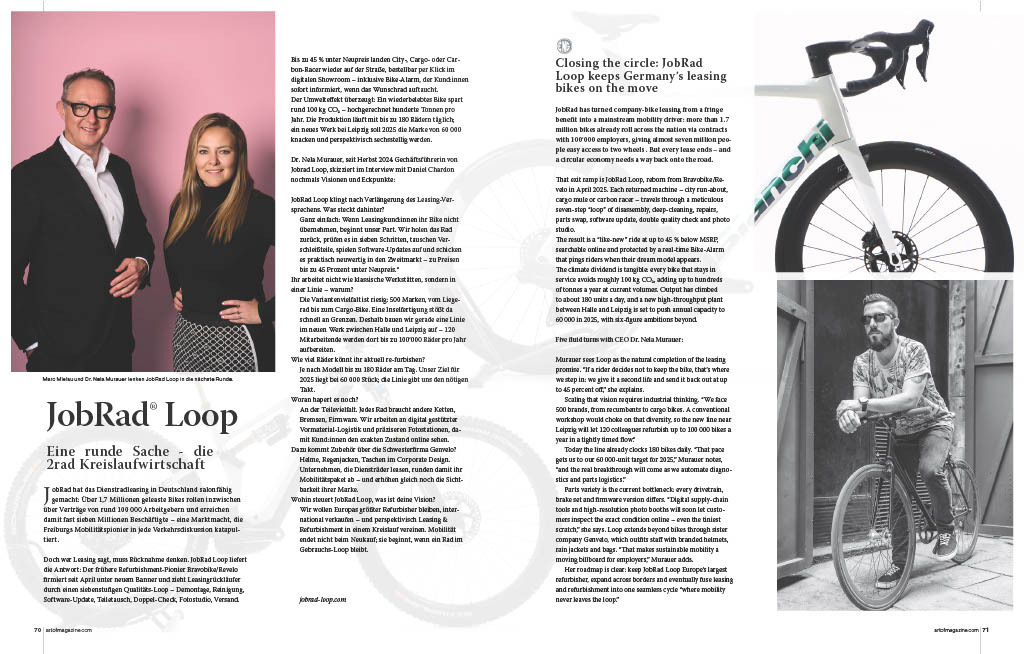 Dr. Nela Murauer beantwortet im Interview mit Daniel Chardon von ART OF MAGAZINE ihre wichtigsten Eckpunkte und Visionen für die Fahrrad-Kreislaufwirtschaft.