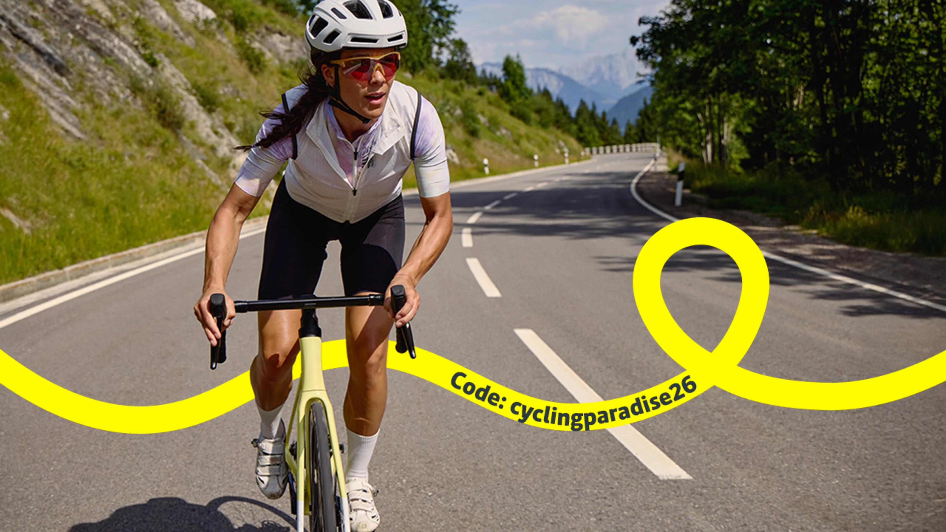 - Code cyclingparadise26 in Rabattcode-Feld eingeben