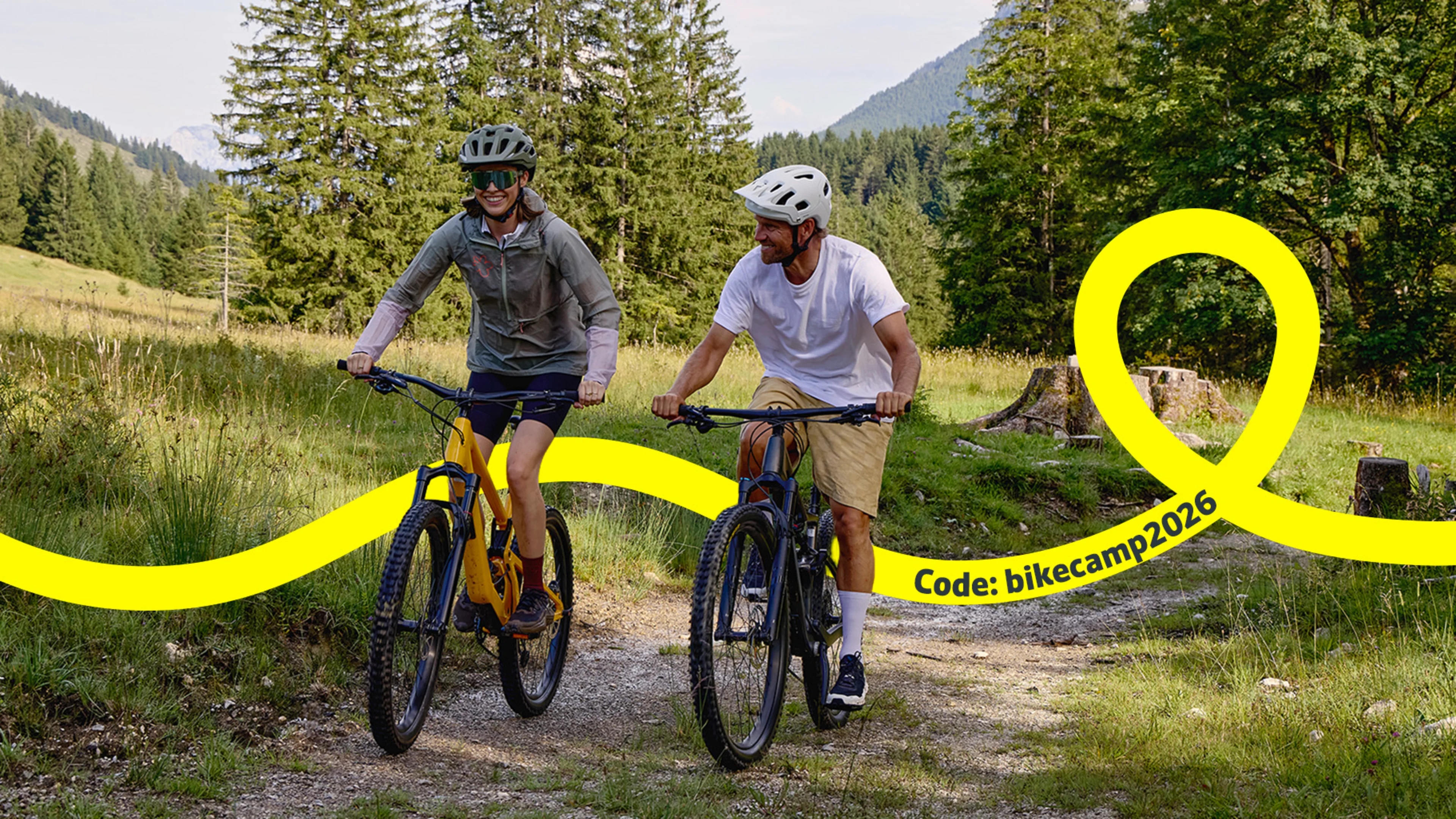 - Code bikecamp2026 in Rabattcode-Feld eingeben